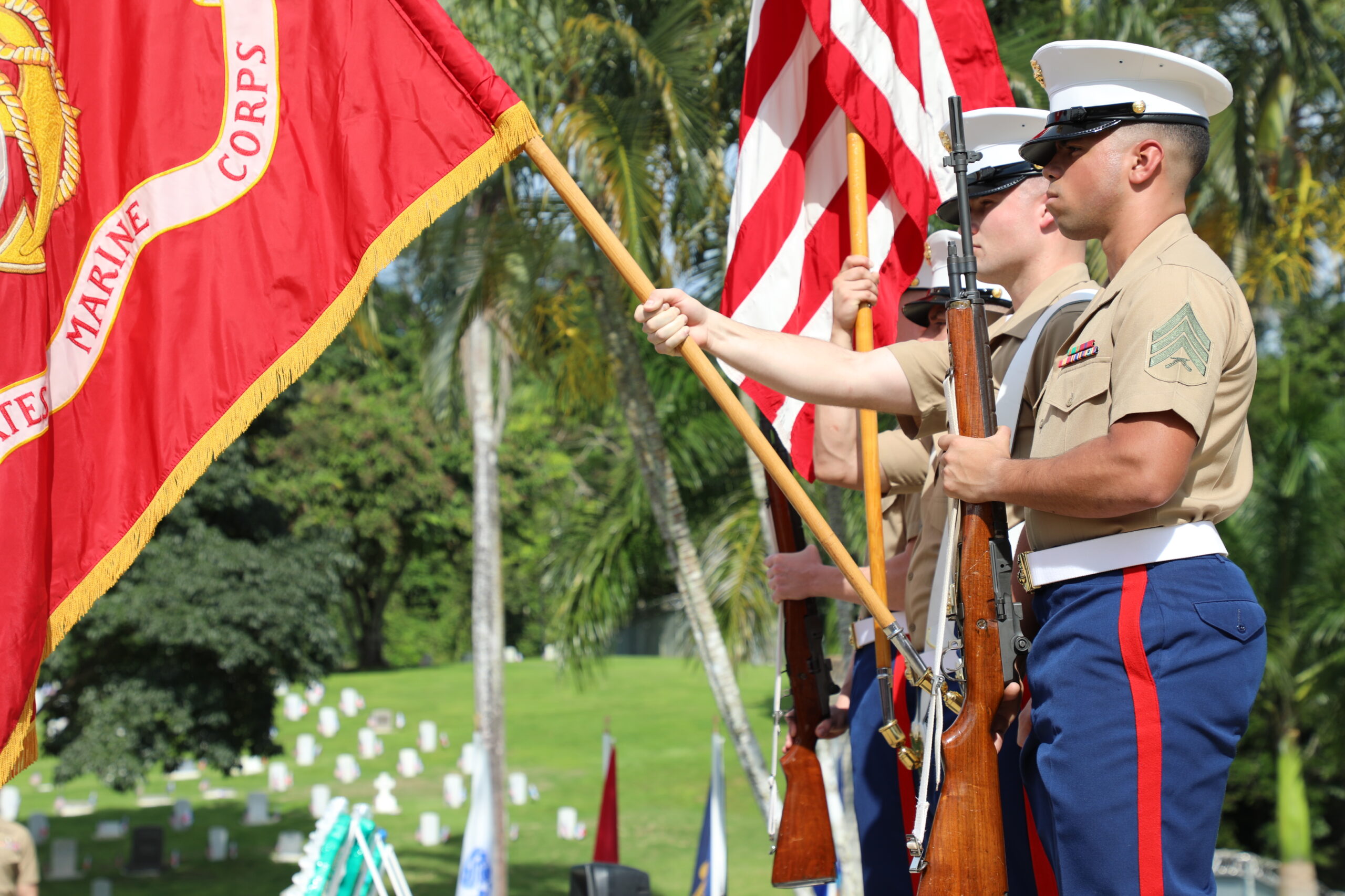 Marines served as the Color Guard during the 2018 Veterans Day Ceremony at Corozal American Cemetery in Panama. Image courtesy of U.S. Embassy Panama.
